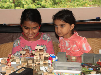 The childern played both Alankar and Nirman. Seeing them count the number of patches at the end of the play session gave us ideas of how to make this game more suitable and fun for children.